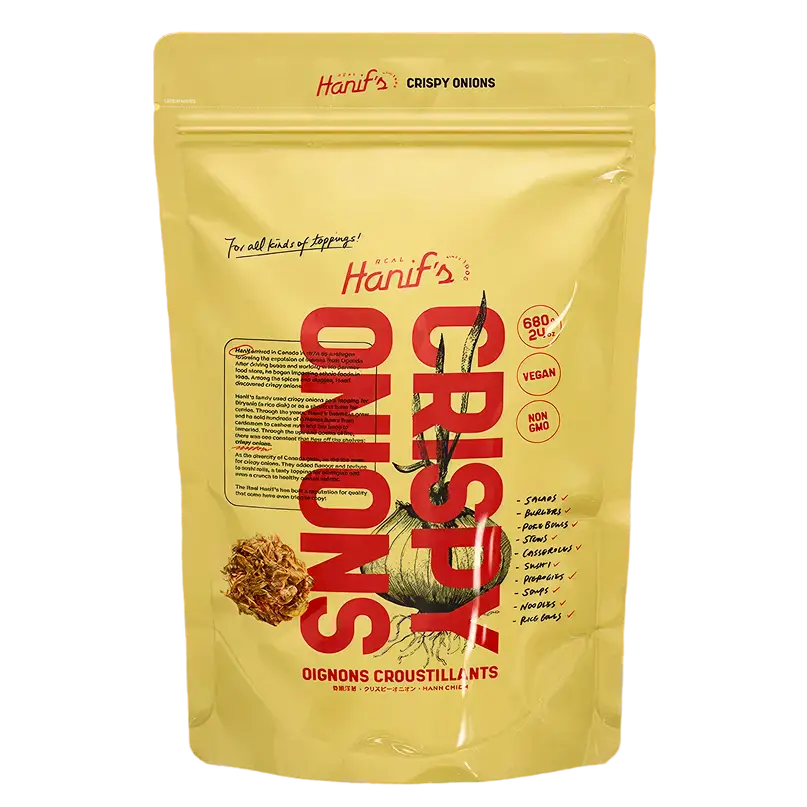 "Hanif’s Crispy Onions have become an essential ingredient in my biryani. They add a delightful crunch and rich flavor that elevates the dish to a whole new level. Plus, they’re incredibly easy to use!"